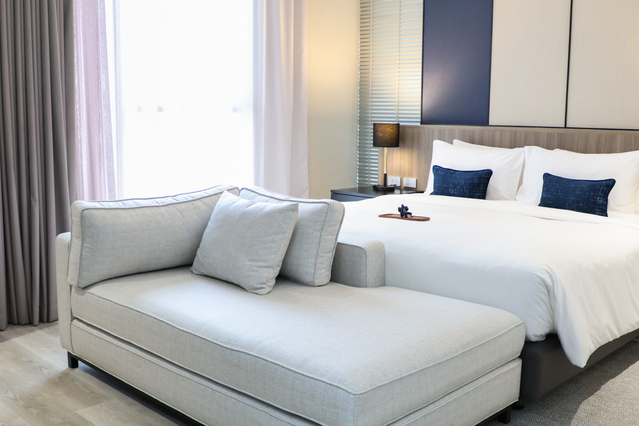 Make the most of your stay in the heart of Bangkok with our spacious accommodations, fully equipped with modern amenities. We offer a range of room options to suit any travel need, from Deluxe Rooms to Three-Bedroom Penthouse Suites ideal for families. Each room combines luxurious design with a warm, home-like atmosphere.