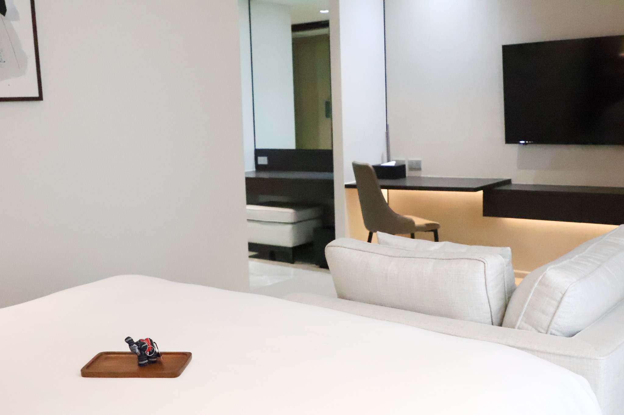 Discover luxury in our 70 square meter Executive Suite, designed for ultimate comfort and convenience. Enjoy expansive living spaces, including a large lounge, a dedicated work area, and a spacious bathroom with a walk-in closet. The suite also features a fully equipped preparation.