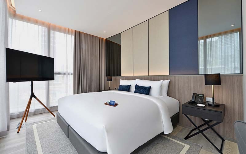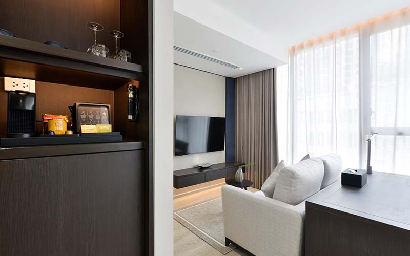 สัมผัสประสบการณ์การพักผ่อนเหนือระดับในห้อง One bedroom suite ขนาดกว้างขวาง 55 ตารางเมตร โดดเด่นด้วยการจัดสรรพื้นที่อย่างลงตัว พร้อมสิ่งอำนวยความสะดวกครบครัน อาทิ ไมโครเวฟ เครื่องปิ้งขนมปัง และอุปกรณ์ครัว มอบทั้งความสะดวกสบายและความหรูหราที่ลงตัว เหมาะสำหรับทั้งการพักระยะสั้นและระยะยาว