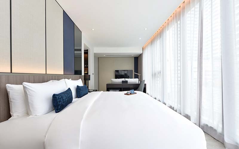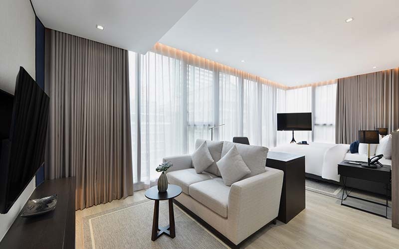 สัมผัสความหรูหราในห้อง Executive Suite ขนาด 70 ตารางเมตร ที่ออกแบบอย่างพิถีพิถันเพื่อความสะดวกสบายสูงสุด เพลิดเพลินกับพื้นที่กว้างขวาง ไม่ว่าจะเป็น Living Area สุดหรู มุมทำงานส่วนตัว (Work Area) และห้องน้ำขนาดใหญ่พร้อม Walk-in Closet อีกทั้งยังมีสิ่งอำนวยความสะดวกต่าง ๆ ตอบโจทย์ทุกความสมบูรณ์แบบในการเข้าพักของคุณ