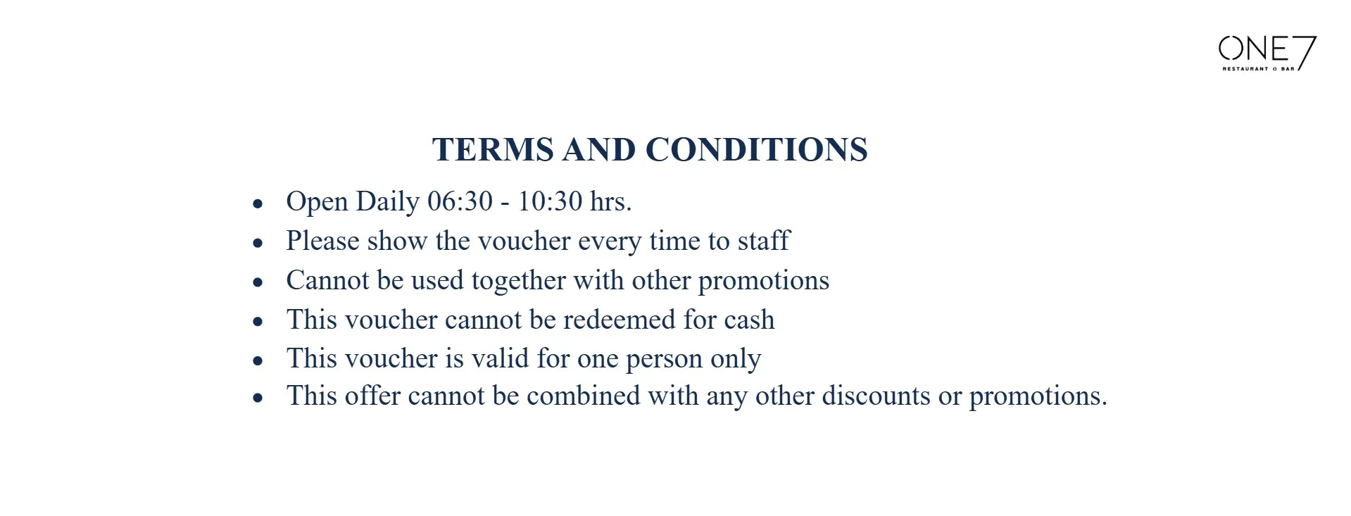 Breakfast Voucher Special at ONE7